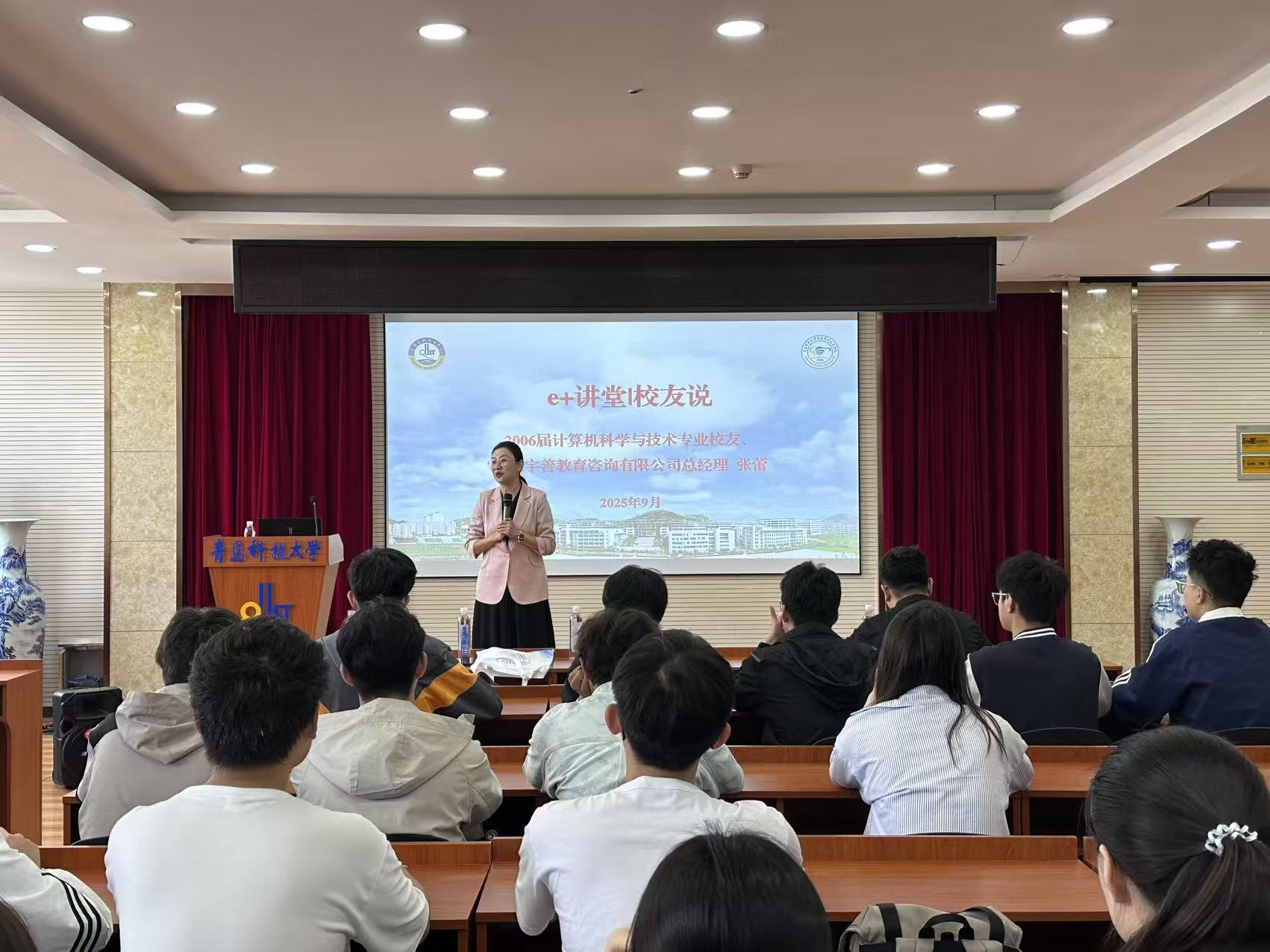 为充分发挥校友榜样引领作用,帮助在校同学拓宽专业视野、明晰生涯规划。9月20日上午,信息学院在学院楼402会议室举办“e+讲堂|校友说”专题分享会。活动邀请2006届计算机科学与技术专业校友、山东宇善教育咨询有限公司创始人张蕾担任主讲嘉宾。